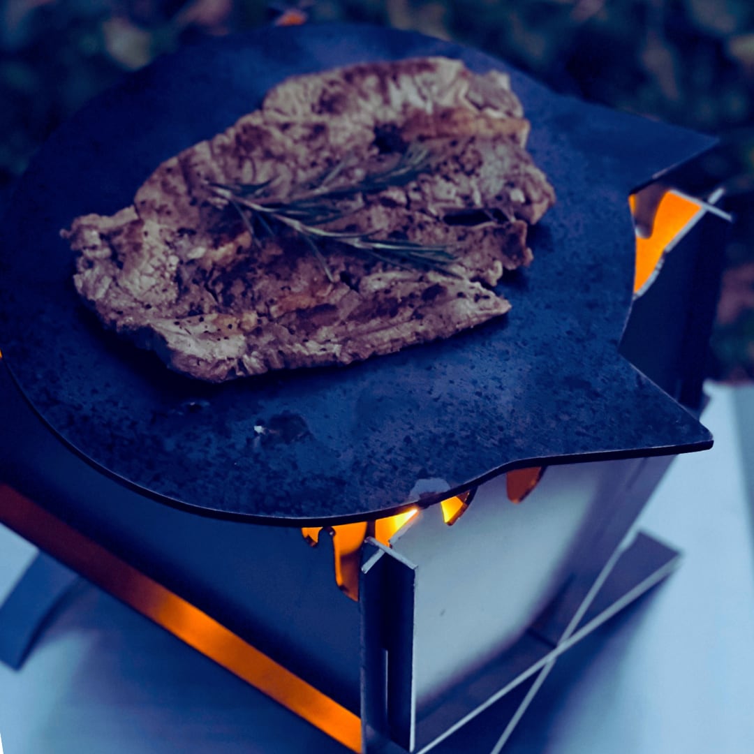 Made from 4.5mm thick black steel plate, it holds up well over direct flames and distributes heat evenly, making it ideal for outdoor cooking or hearty iron plate meals at home. Over time, the surface develops character, giving you the joy of watching it age uniquely—one of the best things about black steel.